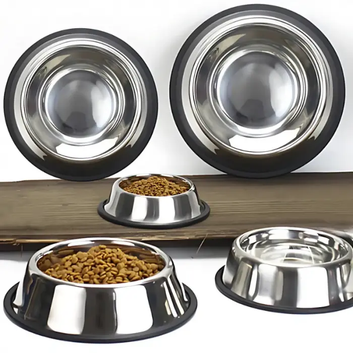 Comedero bebedero de acero inoxidable con base antideslizante.